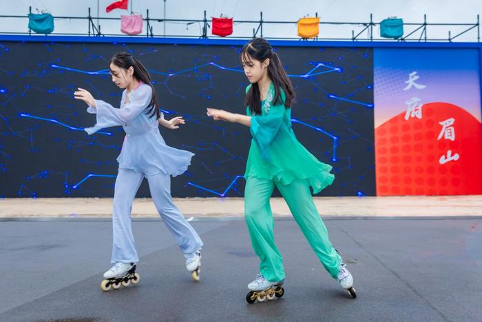 比赛现场,各项目竞技迅速进入白热化阶段。竞速轮滑赛道上,选手们化身“追风者”,速度与技巧的碰撞让观众掌声不断;体育舞蹈赛场上演优雅与灵动的碰撞,多支代表队各展风采,将眉山传统文化与舞蹈艺术巧妙结合。