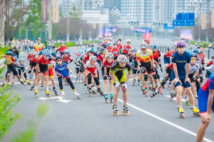 轮滑马拉松的选手们则迎来了意志与耐力的双重考验。选手们如离弦之箭,在赛道上调整节奏,奋力向前。汗水挥洒,坚毅前行,每一次蹬踏都是对自我的超越。